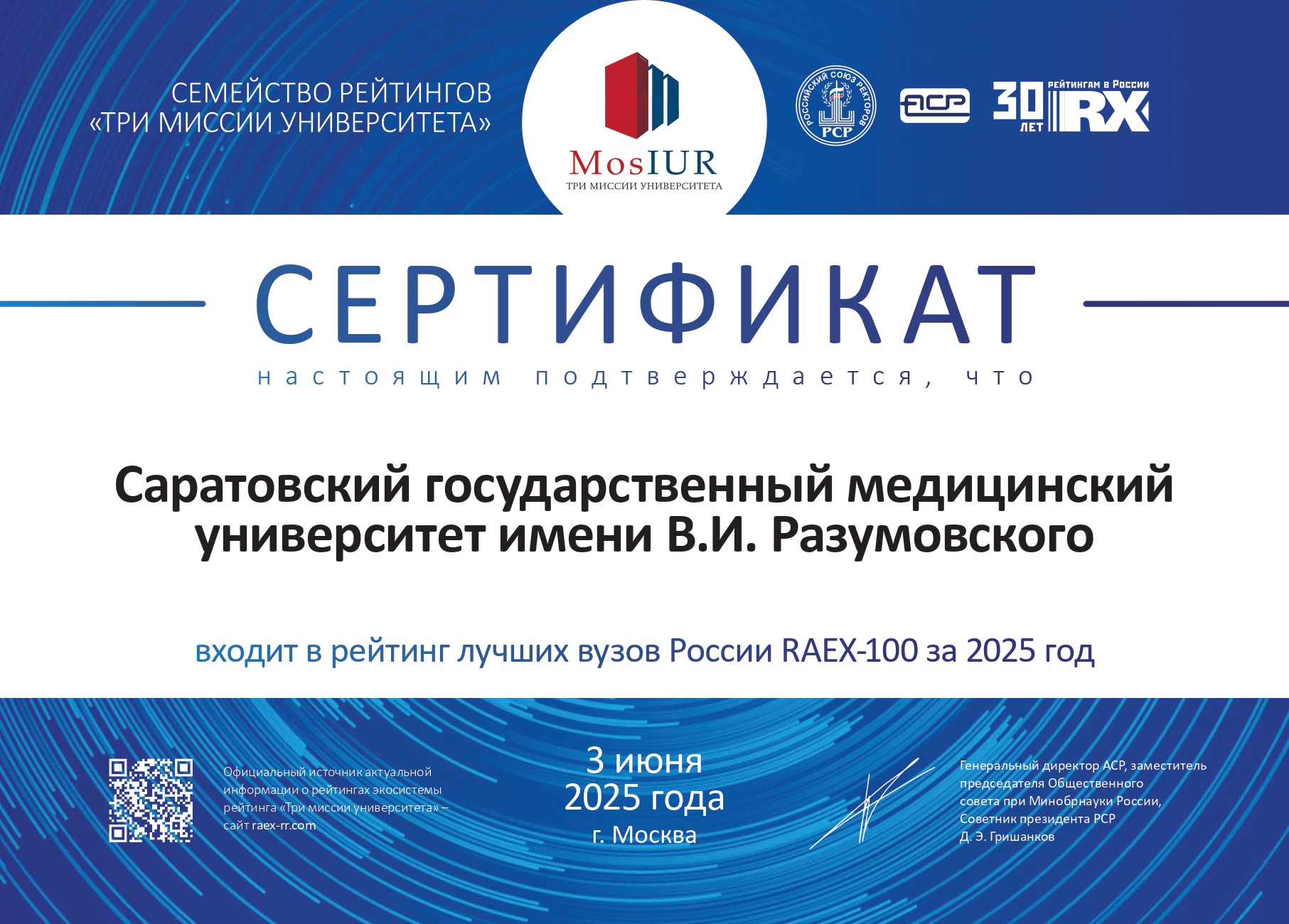 Саратовский государственный медицинский университет им. В.И. Разумовского – один из старейших медицинских вузов России и первое в Саратове высшее учебное заведение – был основан в начале ХХ столетия указом Императора Николая II, подписавшего 10 июня 1909 года «Закон об учреждении университета в Саратове» – десятого университета в России в составе одного медицинского факультета.